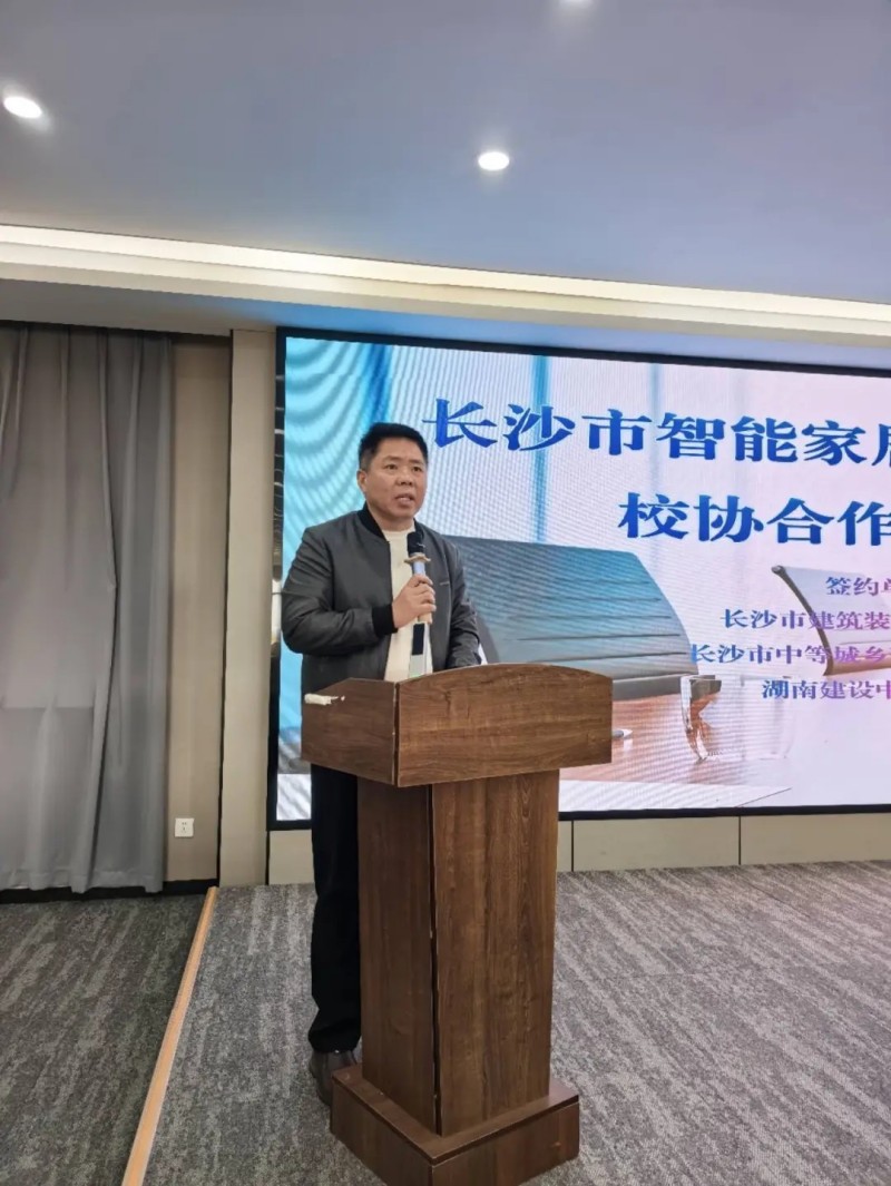 簽約儀式由長(zhǎng)沙市中等城鄉(xiāng)建設(shè)職業(yè)技術(shù)學(xué)校副校長(zhǎng)曹佳主持。儀式上,長(zhǎng)沙市中等城鄉(xiāng)建設(shè)職業(yè)技術(shù)學(xué)校校長(zhǎng)劉廣宇首先致辭,強(qiáng)調(diào)了職業(yè)教育對(duì)接產(chǎn)業(yè)前沿、服務(wù)地方發(fā)展的重要使命。隨后,長(zhǎng)沙市建筑裝飾裝修行業(yè)協(xié)會(huì)秘書(shū)長(zhǎng)羅育梅詳細(xì)匯報(bào)了協(xié)會(huì)智能家居服務(wù)中心在人才培養(yǎng)工作中取得的成果,解讀了合作項(xiàng)目的工作規(guī)劃與實(shí)施路徑。